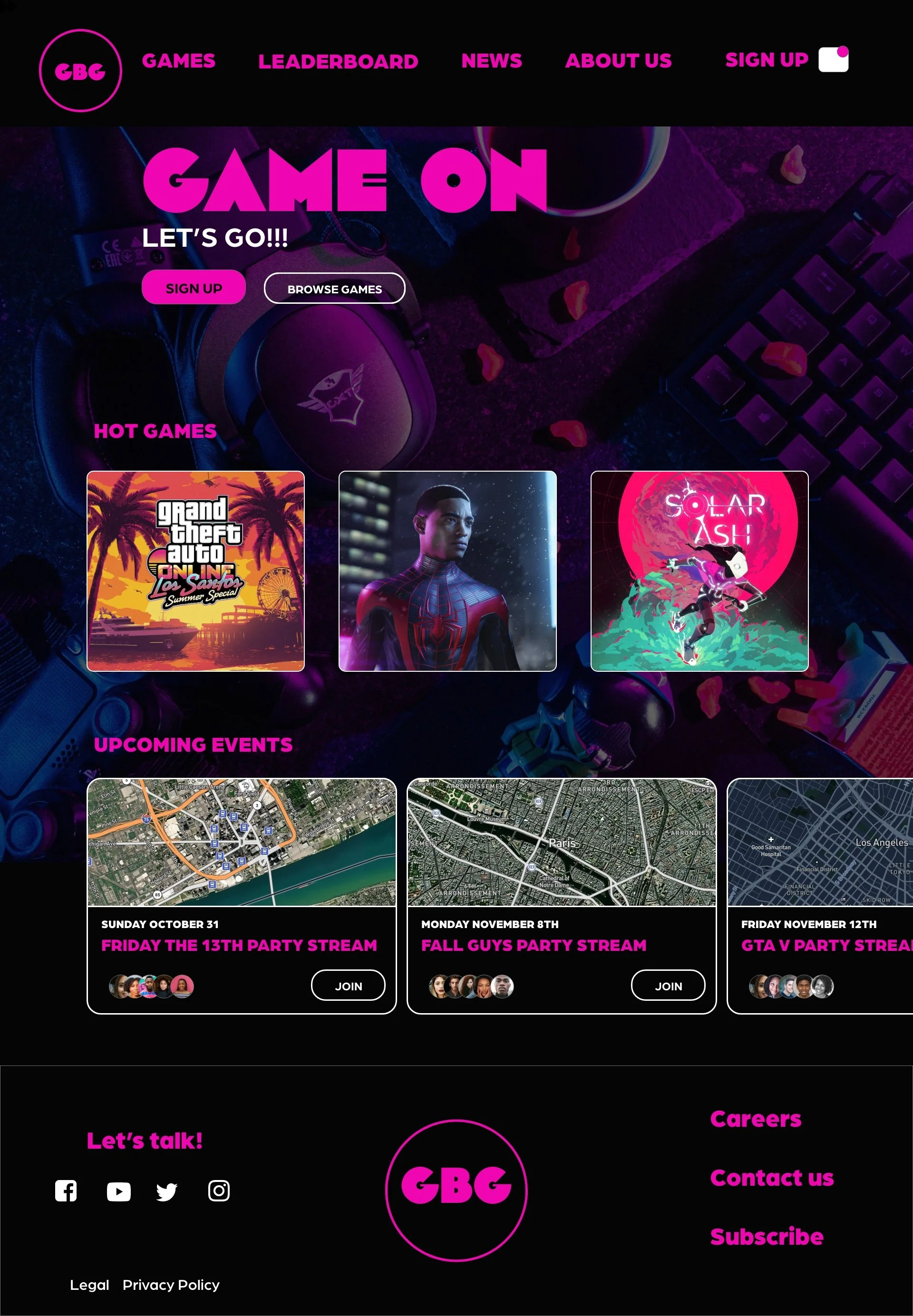 This is an Adobe XD challenge building an iOS Interactive gaming app. There were two session for this app creation. The first session focused on the website. The second day focused on making the mobile app. The themes were similar but instead of utilizing the responsive website switch, I built the mobile app from scratch just for variation.